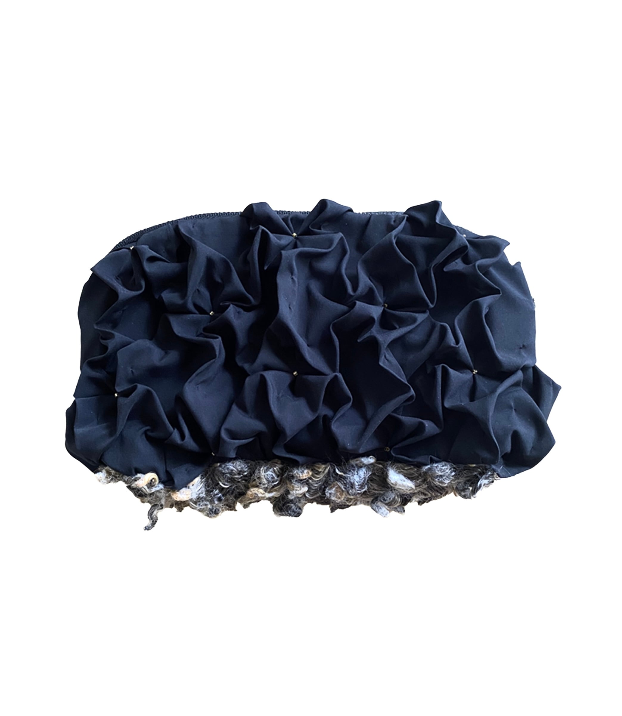 This pouch is entirely hand-smocked with delicate embroidery, creating a soft, sculptural texture.