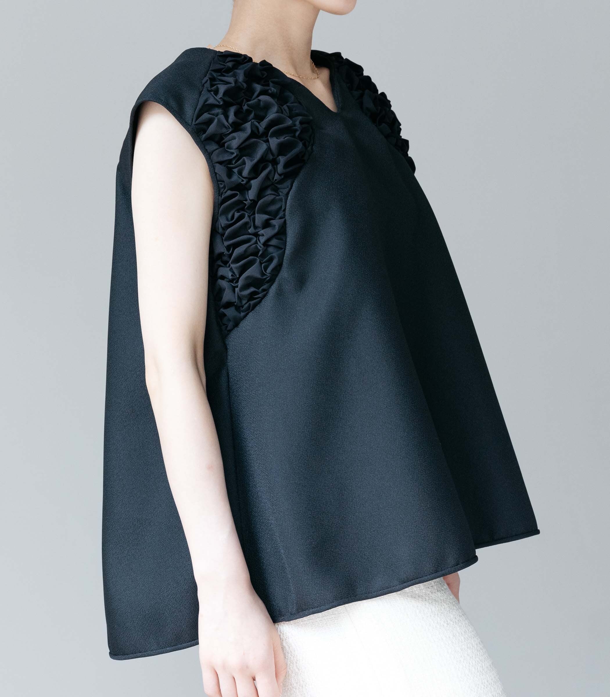 無地のブラック生地に、手仕事によって生まれる立体感と陰影。