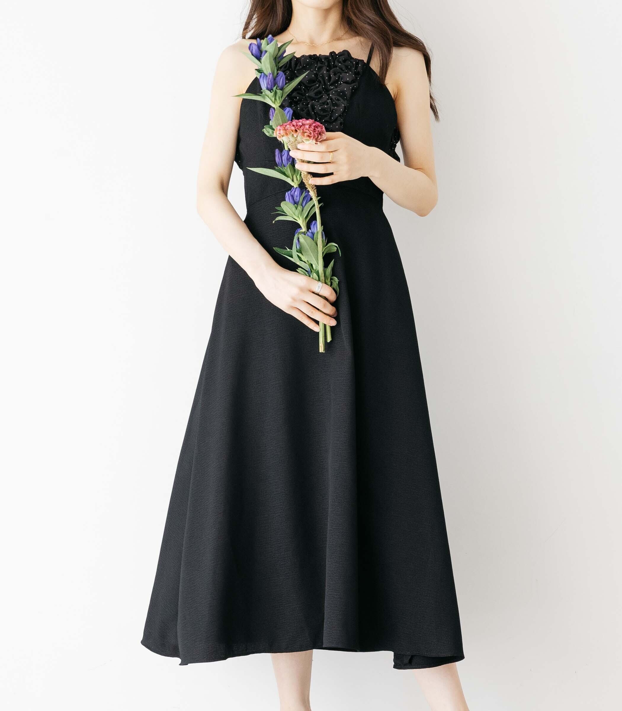 Particularly, the three-dimensional smocking design around the chest and back is inspired by blooming flowers, meticulously crafted piece by piece. We named it “Noir Fleur,” meaning “black flower” in French.